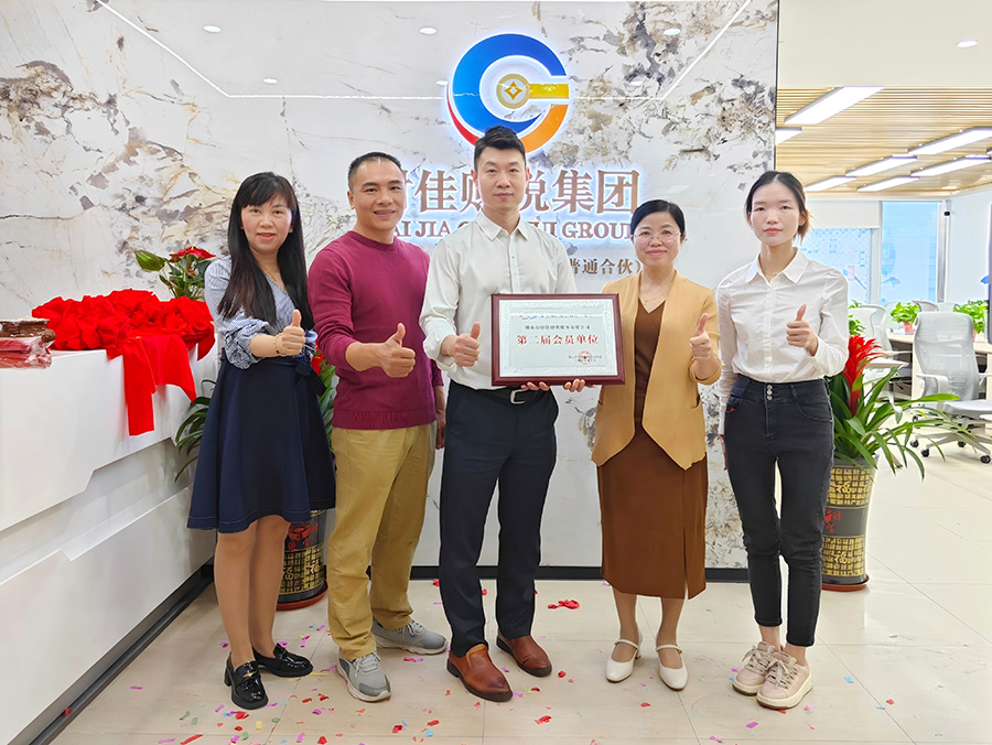 陈家玲轮值会长为佛山市财佳财税服务有限公司负责人张总授予新会员牌匾。