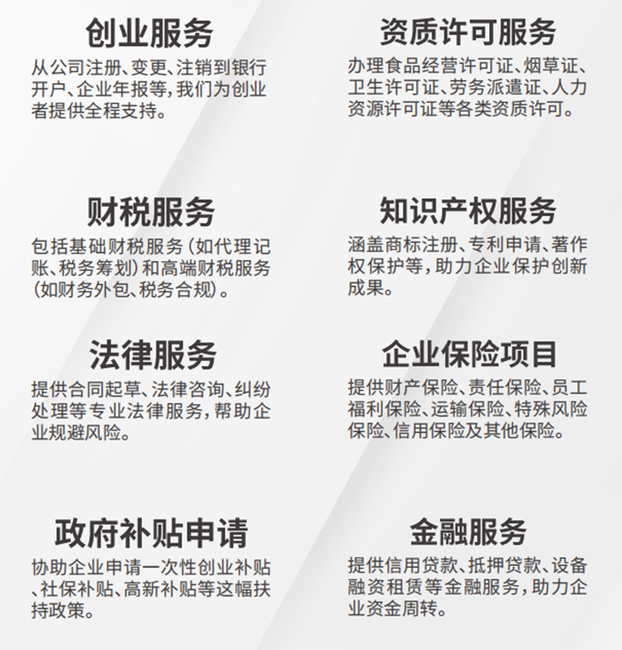 公司秉持 “诚信做人、专业做事” 宗旨,依托规范操作体系与丰富资源,提供全流程无忧服务。从新办企业工商税务开户到企业各类变更、年检注销;从进出口经营权代办、外商投资企业登记,到商标业务,多元服务满足企业全周期发展需求。