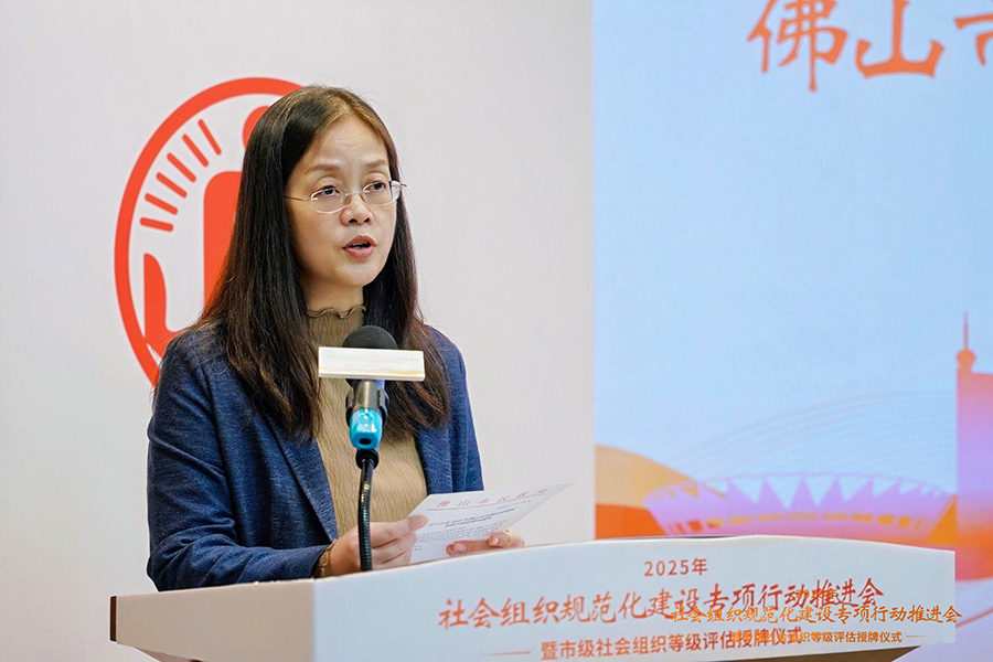 仪式现场,佛山市民政局党组成员、副局长桂红率先宣读2025年佛山市市级社会组织等级评估结果。