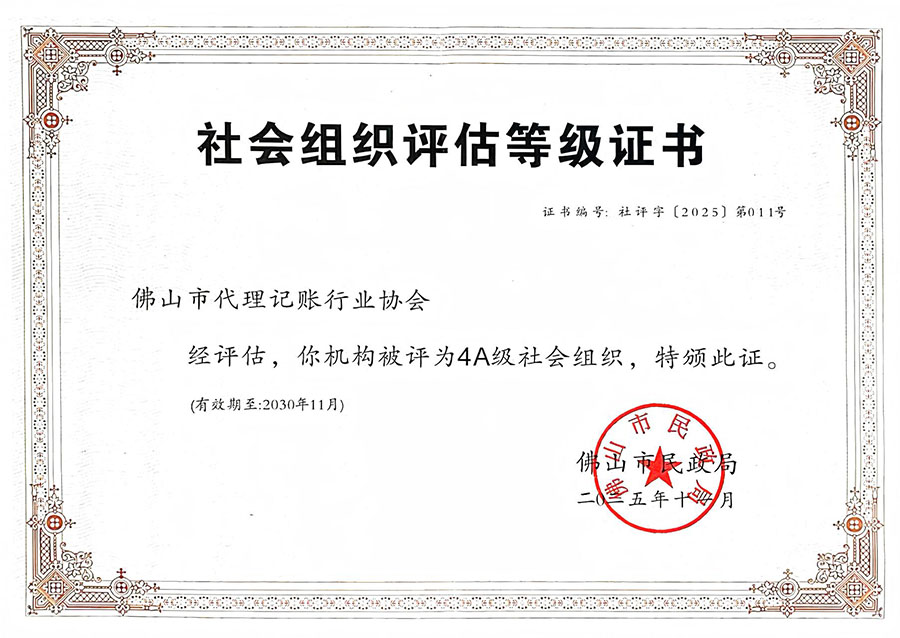 此次获评 4A 级社会组织,是荣誉更是责任。未来,佛山市代理记账行业协会将继续秉持 “引领行业、赋能会员” 的理念,在完善内部治理、拓展服务边界、推动行业升级的道路上稳步前行,为佛山现代服务业发展注入更强劲动力!