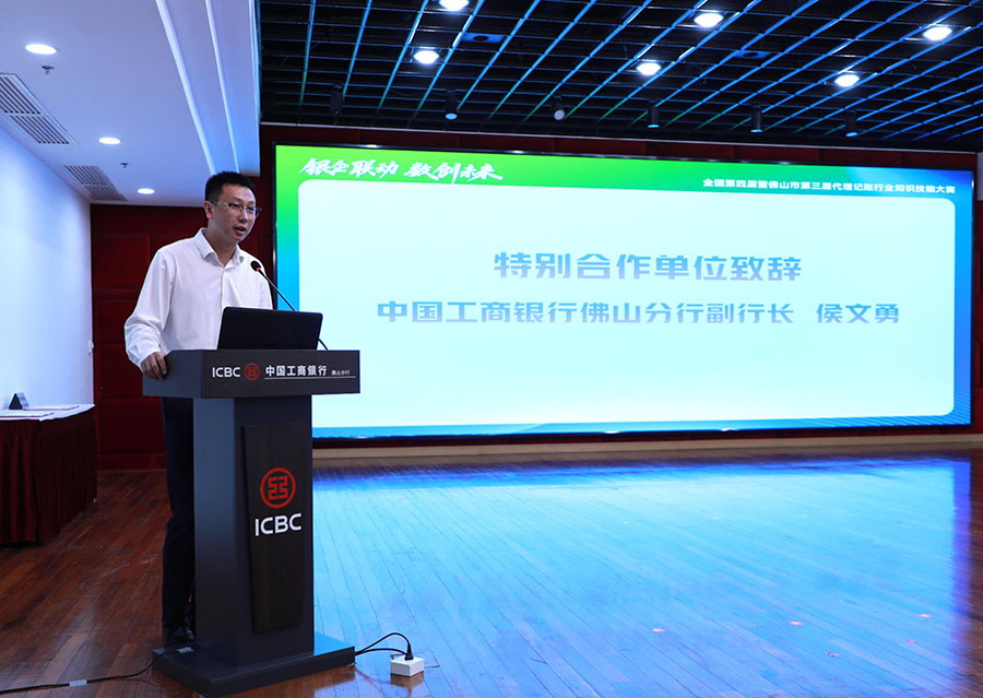 侯行在大赛上致辞,感谢佛山市代理记账行业协会的信任,将本次大赛设在佛山工行,佛山代账协会和佛山工行都是服务本地民营企业的主力军,双方也是支持实体经济发展中的紧密一环。今天大赛的主题“银企联动,数创未来”正是契合金融与产业融合趋势。工行扎根佛山近四十年,推出“银账通”“财资云”等产品及服务,解决行业及客户难题。期望通过金融服务与协会实现互利共赢,今天大赛成功举办是双方合作的新起点,相信在双方的紧密协作下,可通过优势互补、资源共享,支持企业更好地发展,为再造一个新佛山的历史进程留下我们坚实的脚印,同时预祝大赛圆满成功!