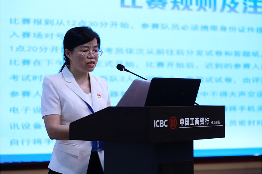 大赛正式开始前,佛山市代理记账行业协会副会长、本次大赛副裁判长陈家玲上台,详细宣读了决赛规则,确保赛事公平、公正、有序进行。