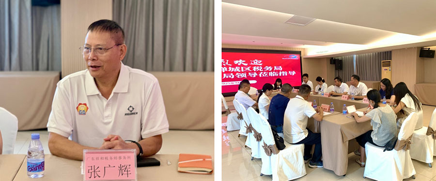 协会会长张广辉(广东祥和)、副会长陈钢钰(诚信税务师事务所)、陈家玲(元海税务师事务所)、监事长霍伟生(浩林企服)、党支部代表李建国、会长单位禅城分公司经理谭焯文及协会秘书处参会,与税务部门领导深入交流。