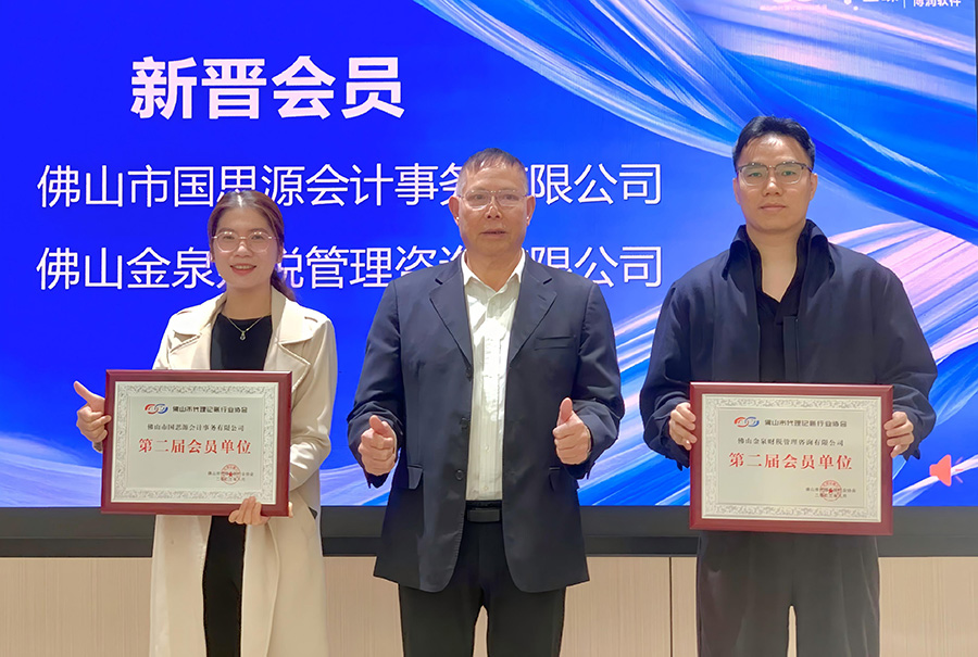 会员单位——佛山市国思源会计事务有限公司、佛山金泉财税管理咨询有限公司加入协会大家庭。
