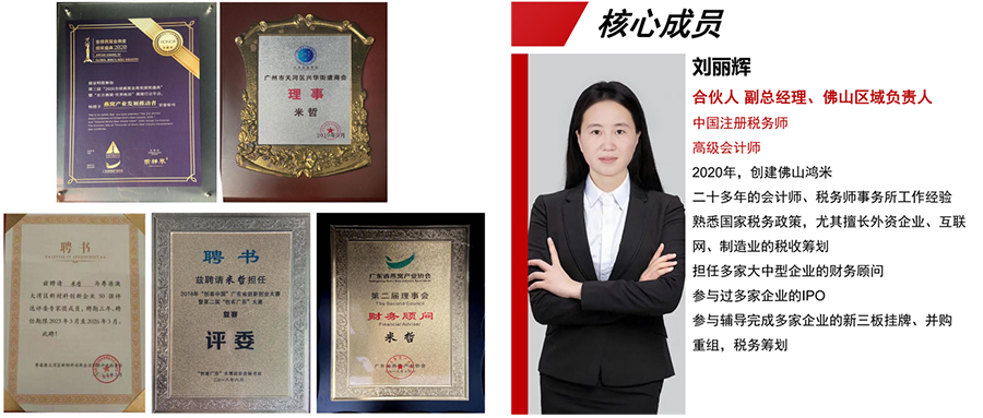 鸿米控股创建于2016年8月,由多名多年深耕于资本市场的注册会计师、注册税务师、律师、保荐代表人创建。公司秉承“专注企业资本运作,提升资本服务价值”的宗旨,努力以一流、有效的专业服务为提高企业的资本运作、企业管理、财税法律规范做出贡献,做受人尊重,有影响力的企业服务机构。公司总部在广州,在珠海、中山、佛山、深圳、北京、上海、海口等地设立了分支机构,客户遍及珠三角、长三角、京津等经济发达地区。