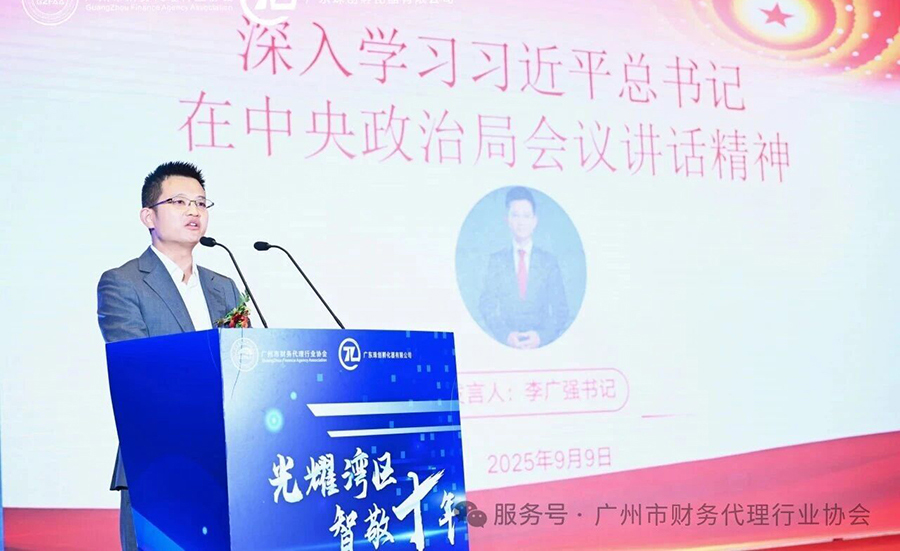 广州市财务代理行业协会党支部书记李广强在讲话中强调,要认真学习习近平总书记近期在中央政治局会议上的重要讲话精神。他指出,该讲话科学研判当前经济形势,为“十四五”圆满收官和“十五五”高起点谋划指明了方向。
