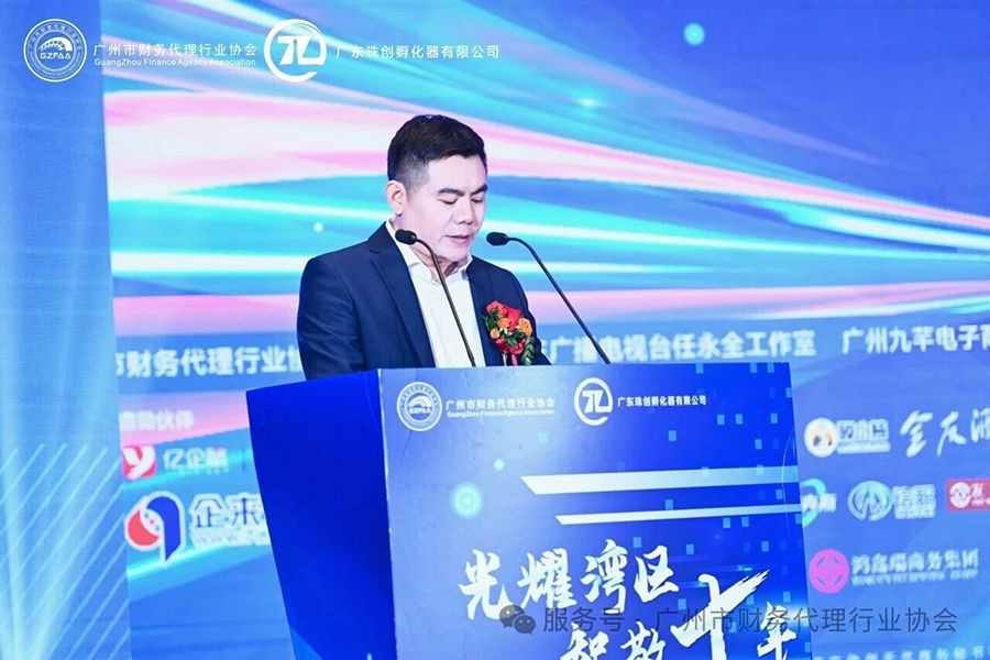 广州市财务代理行业协会会长李广强在总结中回顾了协会十年发展历程,感谢各级领导及会员单位的长期支持,指出协会从初创到稳步前进离不开全体会员的共同努力。他强调,过去一年协会深入贯彻落实党的二十大及历次全会精神,在党建引领、政企沟通及行业规范等方面取得扎实进展,包括推动电子税务局代理通道落地、发布代理记账服务能力评价规范等多项成果。