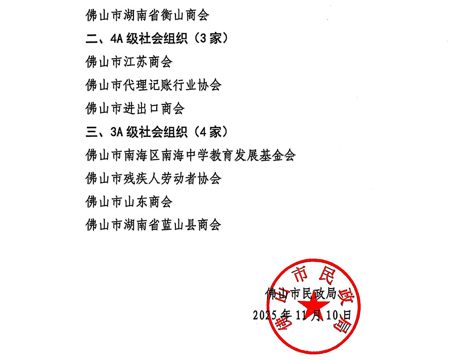 此次获评 4A 级社会组织,是荣誉更是责任。未来,佛山市代理记账行业协会将继续秉持 “引领行业、赋能会员” 的理念,在完善内部治理、拓展服务边界、推动行业升级的道路上稳步前行,为佛山现代服务业发展注入更强劲动力!