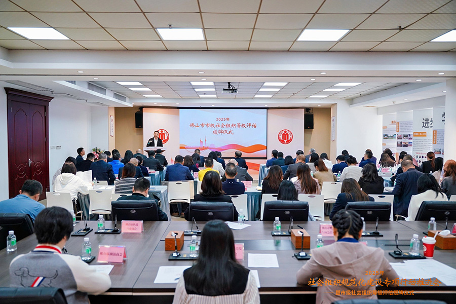 仪式现场,佛山市民政局党组成员、副局长桂红率先宣读2025年佛山市市级社会组织等级评估结果。